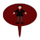 This awesome Cake topper features a digital art image of a creepy but cute Halloween Vampire. The vampire has spiky black hair, a red shirt and black jacket with blood red heart shaped buttons on it. He has a creepy smile and long white fangs. He also has yellow fingernails, purple socks and black shoes with gold buckles on them. His arms are open welcoming you for an evil embrace.