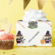 Cute Halloween witch and haunted house wrapping paper. The text "Happy Halloween" and "Trick or treat" can be personalized.