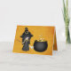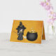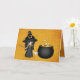Halloween Greeting Card with a cute witch , broom and a cauldron on an orange polka dot background. Inside designed!