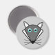 This magnet features a kawaii style cartoon of a cute gray Halloween Wolf with pointed ears, bright blue eyes and black nose surrounded by whiskers. This cute wolf is perfect for Halloween or for animal lovers.
