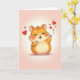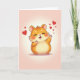 This sweet card features a plump, lovable hamster at the center, drawn with a round shape and soft fur that shifts from warm golden orange to creamy beige. Its eyes are closed in pure happiness, with rosy cheeks and a wide smile that instantly lifts the mood. One tiny paw is raised in a friendly wave, giving the hamster a welcoming and cheerful personality.