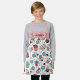 Cute personalized apron featuring a hand drawn pattern of cupcakes with frosting and decorated with sprinkles, berries, and fruit in lovely pastel colors. Add your name or your child's name against pink, surrounded by cute stars.