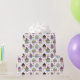 Pink, teal, red, purple, whimsical girl's birthday gift wrap full of cherry, strawberry, vanilla and chocolate cupcakes.