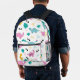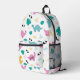 This backpack design features a cute hand-drawn dinosaur pattern in girly colors for your personalization.