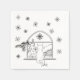 Cute black and white hand drawn festive winter scene showcasing a cat sitting on a window ledge looking at a Christmas tree with snowflakes. Designed by Anne Londez. Perfect for your Christmas party!