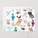 Cute Hand Drawn Geometric Paper Origami Animals Postcard