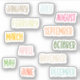 Customizable Monthly Planner Stickers: This sticker pack includes kiss cut monthly stickers with the name of the months in a colorful pastel charming handwritten sans font. The colors of the text are customizable and changeable to any colors desired (just click 'Edit Design' to make the changes). These stickers are perfect for adding to your planner or calendar to keep track of important dates and events.