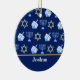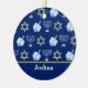 Cute Hanukkah Pattern Blue Monogram Holiday Ceramic Ornament