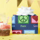 Peace Love Hanukkah wrapping paper in dark blue for a Jewish person who likes to celebrate Chanukah. A pretty peace sign, heart, and a beautiful menorah in a cute pattern for the holiday.