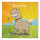 Cute happy alpaca with butterfly cartoon faux canvas print