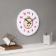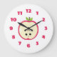 Cute and stylish large clock featuring an adorable kawaii smiling apple framed by bright red numbers in a casual, modern typeface. This sweet design is perfect for adding a fun style to nursery and kids' rooms and an excellent gift for foodies and fruit lovers.