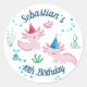 Cute Happy Axolotl White Birthday Party Classic Round Sticker