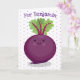 This adorable design features a cute smiling purple beet. Drawn in bright cartoon illustration style.