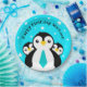 Celebrate his first birthdays with this whimsical design, which features adorable, egg-shaped baby penguins sporting blue neckties on a starry light blue background!