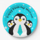 Cute Happy Birthday Boy Penguins Blue Neckties Paper Plates