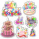 Cute Happy Birthday Cakes and Balloon Stickers to use on invitations, gifts or for any other uses.