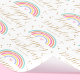 Celebrate a special birthday with personalized name wrapping paper! This elegant pattern features pastel colored rainbows, hearts and stars, with stylish script typography. Simply customize the template with the recipient's name to create a unique gift wrap. Rainbows symbolize joy and happiness, a perfect design for children, friends, and family. This seamless pattern gift wrap is printed on premium quality paper with your choice of a matte or glossy finish. Different length rolls are available from 6 feet - 60 feet. Colors: peach, pink, yellow, blue-green, lavender blue, white, and gold.