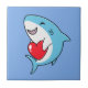 Cute Happy Blue Shark Holding a Red Heart Ceramic Tile