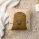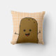 Cute Happy Brown Potato Peach White Grid Throw Pillow