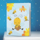 Add a cute touch to your little one's school work with this adorable bumble bee pocket folder. Folder features happy bees, one with honey, and the others buzzing around. There are also yellow and orange flowers and a soft blue background. In the corner there's a place for your young kid's first name and monogram initial.