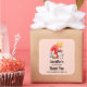 Party thank you stickers with an adorable image featuring a smiling cow, with a gold star balloon and some cake and a present.
