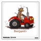 Cute happy cow driving a red tractor cartoon wall decal