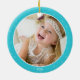 Cute Happy Duck in Rain with Rainbow Custom Photo Ceramic Ornament