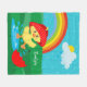 Celebrate the rain with this cute happy duck fleece blanket. Blanket has a joyful yellow duck splashing in a puddle. The duck is wearing a polka dot hat and has a red umbrella. In the sky is a beautiful colorful rainbow, sun, clouds, and rain. Personalize the blanket with your child's first name.