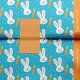 Add a cute touch to your Easter holiday gift with this adorable pattern of a bunny face and orange carrot on a blue background. For a personalized touch, add Happy Easter text with a first name (or delete, per your preference). Makes a great addition to a gift for a young boy or girl!