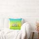 Colorful Happy Easter and Easter egg with cute chicken, butterflies and snowdrop in the green grass. Blue, yellow and green gradient pillow.
