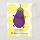 Add some garden fun to your day with this cute eggplant drawn in cute cartoon illustration style on a yellow dot background.