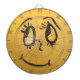 This dart board features an adorable version of the ever popular happy face. The expression on the dart board is sure to make anyone smile. The artist is Maureen Alfiero from Down The Lane Farm in Killingworth, Connecticut.