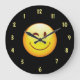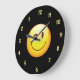 Cute reverse dial wall clock with a happy smiley winking face in the center on a black background. There is no text on this product but can be added if desired, if you would like help to customize your product please contact me through my store and i will be very happy to you.