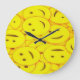 A fun design featuring lots of yellow smiling happy faces all piled up like tiddly winks.