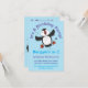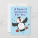 Cute happy flying puffin blue cartoon illustration invitation
