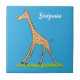 Cute happy giraffe with butterfly cartoon ceramic tile