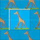 From the happy safari. This cute giraffe has a butterfly on his nose with a blue background.