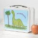 Cute happy green brontosaurus dinosaur cartoon metal lunch box
