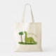 Cute happy green brontosaurus dinosaur cartoon tote bag