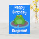 Cute happy green frog cartoon birthday card