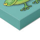 Cute happy green gecko greetings with bug cartoon faux canvas print