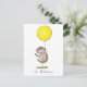 This happy postcard features our cute hedgehog being carried by a big yellow balloon. Lots of adorable cartoon fun.