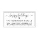Elegant Modern Happy Holidays Script Christmas Return Address Rubber Stamp. Features a „Happy Holidays” script in a hand lettered calligraphy swash tail font type and love heart symbol. Easy to add your family name and return address.
