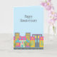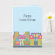 Whimsical "Happy Housiversary" cards for real estate marketing. The design features a cute urban neighborhood on a light blue background. Perfect for residential realtors, mortgage lenders, title agencies, home inspection services, etc.