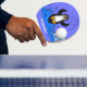 Cute happy jumping penguin cartoon illustration ping pong paddle