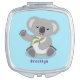 This cute marsupial koala is enjoying a leafy snack and waving hello. Drawn in cartoon illustration style.