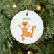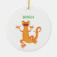 Cute happy orange dancing newt ceramic ornament