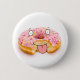 Cute happy pink donut character, made from a photograph and hand drawn features button