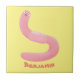 Cute happy pink earthworm cartoon ceramic tile