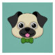 An illustration of a cute cartoon happy pug dog with green papillon for bestfriend and pet day. This adorable animal design is a gift idea for puppy lovers and dog with breed lovers.